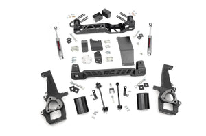 Give your RAM 1500 the perfect blend of performance, protection, and style with Rough Country's 6-inch Suspension Lift. Designed to offer an affordable way to maximize off-road performance and run up to 37-inch tires, these kits offer high quality, heavy-duty equipment for new model RAM 1500ΓÇÖs. Utilizing heavy-duty, laser cut, steel equipment engineered by Rough Country, these 6-inch Suspension Lifts are complete kits that include everything needed for outstanding off-road performance. High-clearance front and rear cross-members provide enough room for off-road climbs and runs. A heavy-duty skid plate shields the vehicleΓÇÖs differential, protecting you from hazardous terrain. A durable set of driver and passenger side lifted cast knuckles are also included, helping to promote proper geometry once the vehicle is lifted. For true trailblazers, this kit also ships with a set of rear N3 Nitrogen-charged shock absorbers - valved specifically for a blend of on and off-road performance. Includes Rough Country's Lifetime Replacement Guarantee!