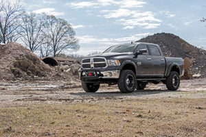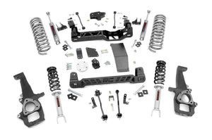Give your RAM 1500 the perfect blend of performance, protection, and style with Rough Country's 6-inch Suspension Lift. Designed to offer an affordable way to maximize off-road performance and run up to 37-inch tires, these kits offer high quality, heavy-duty equipment for new model RAM 1500ΓÇÖs. Utilizing heavy-duty, laser cut, steel equipment engineered by Rough Country, these 6-inch Suspension Lifts are complete kits that include everything needed for outstanding off-road performance. High-clearance front and rear cross-members provide enough room for off-road climbs and runs. A heavy-duty skid plate shields the vehicleΓÇÖs differential, protecting you from hazardous terrain. A durable set of driver and passenger side lifted cast knuckles are also included, helping to promote proper geometry once the vehicle is lifted. And for true trailblazers, this kit also ships with a set of rear N3 shock absorbers - Rough CountryΓÇÖs premiere shocks; valved specifically for unparalleled off-road performance. Best of all? You'll achieve better performance, bigger tires, and considerable protection all without sacrificing the look of your truck. All components are specifically designed to keep things nice and tidy underneath, utilizing drop brackets to promote proper geometry and leaving nothing hanging out in plain sight. The beefy cross members feature a laser-cut RC logo, giving the truck a fierce, but streamlined look after lifting. Includes Rough Country's Lifetime Replacement Guarantee!