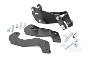 Get the best of both worlds with Rough Country's Jeep JK Control Arm Relocation Brackets. These durable drop brackets help reset JK control arm angles to a more natural and comfortable geometry. By reducing the operating angle of the front control arms, the force applied to the arm when hitting a bump is now directed up into the springs instead of being absorbed into the frame. These drop brackets allow a JK with 3.5in to 4in of lift to operate more like stock, with a more appropriate geometry to increase force on the front wheels. More force means more traction in straight line braking and reduced weight shifting and inertia when braking during a curve. Install a set of JK Control Arm Relocation Brackets, and gain the ultimate in lifted ride quality.