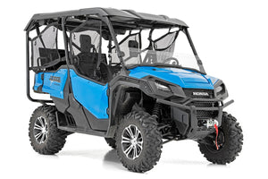 Added Protection and comfortability. Protect the occupants of your Honda Pioneer from off-road hazards such as rocks, branches, and other debris with Rough Country's Scratch-Resistant Windshields. UTV Windshields offer a clear visual of the trail ahead and allow for a much more comfortable outing!\High-Quality Polycarbonate Construction. Rough Country UTV windshields are constructed from thick polycarbonate material that is precision cut for a perfect fit.  The polycarbonate material provides an ideal combination of clarity, flexibility, durability that outperforms glass, acrylic, and other windshield materials. \Durable Scratch and UV Resistance. Each windshield is not only constructed from thick polycarbonate material but enhanced by a secondary AR2 hard-coating process.  This process completely coats the windshield with a hardened, scratch-resistant barrier.  This treatment also provides the additional benefit of UV protection.\Easy Installation. With a simple strap-on installation process, installing a Rough Country windshield couldn't be easier.  Within 15 – 30 mins you can be ready to hit the trails.  \Limited-Lifetime Replacement Warranty. Rough Country's Scratch-Resistant Windshields are backed with a limited lifetime replacement warranty towards manufacturer defects. As such, the product is protected from structural and workmanship damage after the date of purchase. With our industry-leading warranty give yourself peace of mind when using Rough Country's Suspension products!