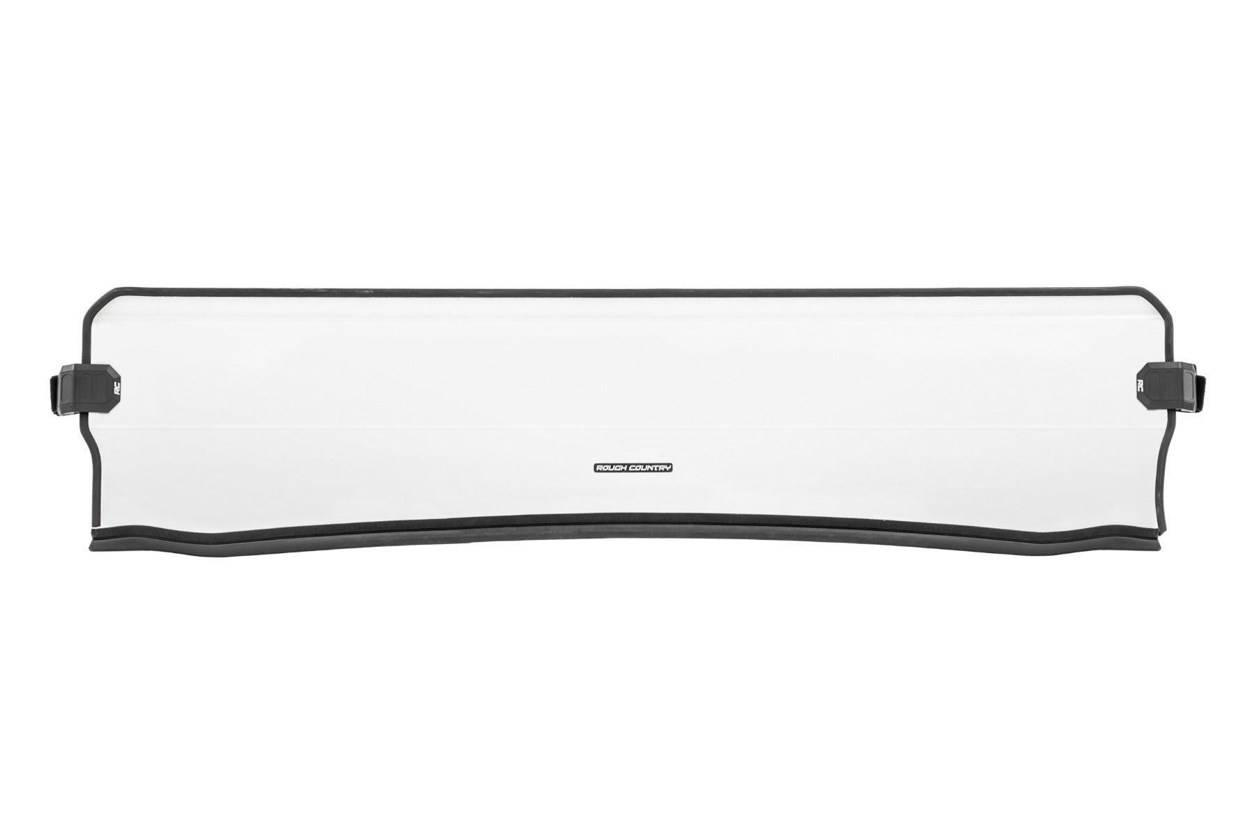 Added Protection and comfortability. Protect the occupants of your Mule Pro-FX from off-road hazards such as rocks, branches, and other debris with Rough Country's Scratch-Resistant Windshields. UTV Windshields offer a clear visual of the trail ahead and allow for a much more comfortable outing!\High-Quality Polycarbonate Construction. Rough Country UTV windshields are constructed from thick polycarbonate material that is precision cut for a perfect fit.  The polycarbonate material provides an ideal combination of clarity, flexibility, durability that outperforms glass, acrylic, and other windshield materials. \Durable Scratch and UV Resistance. Each windshield is not only constructed from thick polycarbonate material but enhanced by a secondary AR2 hard-coating process.  This process completely coats the windshield with a hardened, scratch-resistant barrier.  This treatment also provides the additional benefit of UV protection.\Easy Installation. With a simple strap-on installation process, installing a Rough Country windshield couldn't be easier.  Within 15 – 30 mins you can be ready to hit the trails.  \Limited-Lifetime Replacement Warranty. Rough Country's Scratch-Resistant Windshields are backed with a limited lifetime replacement warranty towards manufacturer defects. As such, the product is protected from structural and workmanship damage after the date of purchase. With our industry-leading warranty give yourself peace of mind when using Rough Country's Suspension products!