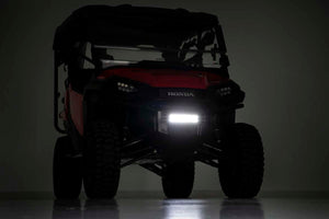 COMMAND THE DARK with Rough CountryΓÇÖs 10-inch Slimline LED Bumper Kit for Honda Pioneer 1000 models. This handy solution includes everything you need to upgrade your Pioneer with a single or dual Rough Country 10-inch LED light bar mounted into the factory bumper for outstanding illumination. Choose between a single or dual LED configuration for the look and output you desire. Each light can be pitched upward, downward, or straight ahead to illuminate however you see fit. Whether youΓÇÖre off the beaten path at sunset or gathering all your gear before dawn, youΓÇÖll be glad to have access to this additional lighting power to tackle the task at hand. With up to 8,000 lumens and 100 watts of high-intensity CREE LED output, youΓÇÖre sure to have plenty of LED power. These all-weather lights feature a durable, IP67 Waterproof, die-cast aluminum housing and include a premium wiring harness with toggle switch and in-line fuse. Best of all, this easy-to-install kit features a 100% bolt-on installation procedure allowing you to upgrade your side by side quickly and easily! DonΓÇÖt miss this opportunity to upgrade your UTV with one of the best Honda Pioneer LED accessories available!