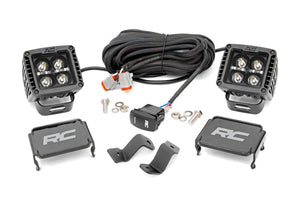 Whether itΓÇÖs off-road riding at night or navigating the trails after hours, Rough CountryΓÇÖs Lower Windshield LED Ditch Mounts gives you the strong side illumination you need. Never miss another turn, and safely maneuver through any off-road situation in the dark without obstructing visibility from inside the cab. This easy to install mounting system is low profile and features 100% bolt-on installation procedure, with no need for cutting or drilling needed. The LED Cubes tuck nicely along the base of the windshield and pack impressive lighting power. Each Rough Country LED light cube is IP67 Waterproof and includes a premium, braided wiring harness with in-line fuse and on/off switch. This kit Includes Rough CountryΓÇÖs 3-year LED warranty.