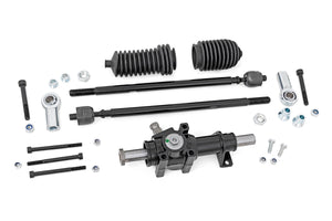 Don’t let poor steering lead you in the wrong direction. If you're looking for a sturdy rack and pinion system that'll steer your UTV in the direction you want, look no further than our upgrade for the Polaris Ranger. Your Ranger is built for hard work and off-road adventure, but utilizing your rig to its full potential can lead to sloppy steering. Our heavy-duty rack and pinion kit is designed to provide precise steering so you can navigate any terrain with ease.\Heavy-Duty Design. Rough Country's new Rack and Pinion Kit for the Polaris Ranger is a unique, durable design that outperforms the stock OE. Utilizing a 22mm connecting shaft and 18.8mm spline diameter, this unit is sure to tackle any terrain. Boasting a black e-coat Rough Country's Rack and Pinion not only looks good but is corrosion and chip resistant! You will experience a smoother, more responsive ride thanks to our upgraded features.\Installation and Warranty: Our Rack and Pinion Kit comes with the hardware you need for easy installation. Rough Country's industry-leading limited warranty is included for your peace of mind.