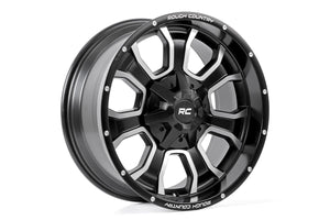 Set yourself apart from the pack with Rough CountryΓÇÖs One-Piece Series 93 Wheels. This 7-spoke black and machined wheel offers an incredible look thatΓÇÖs sure to turn heads. This one-of-a-kind wheel features 7 spokes that flare out near the lip for a dramatic visual style thatΓÇÖs perfect for any lifted vehicle. This stylish wheel features a gloss black coat with machined accents that pop under any truck or Jeep. Rough CountryΓÇÖs Series 93 is a one-piece wheel design, constructed from a single piece of heavy-duty aluminum for the optimal balance of weight and performance. Each Series 93 Wheel includes dual machined ΓÇ£Rough CountryΓÇ¥ logos and a center cap with ΓÇ£RCΓÇ¥ carbon fiber logo design and includes a limited lifetime warranty.