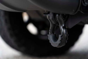 Give your vehicle an upgraded recovery option that offers a more aggressive look with Rough CountryΓÇÖs Tow Hook to Shackle Conversion Kit! This easy-to-install upgrade replaces your factory tow hooks with a durable d-ring shackle mount thatΓÇÖs easier to access and gives the front of your vehicle an eye-catching look. Rough CountryΓÇÖs Shackle Mount bolts directly to the frame providing the same strength and durability as your factory tow hooks to aid in recovery in any situation. Each mount is powder coated black for a long lifespan of good looks and is designed to work with both factory and many aftermarket bumpers. The mounting point was engineered to accept any 3/4in d-ring shackle, allowing you to customize the look of your vehicle. Featuring a 100% bolt-on installation process, this great-looking upgrade can be installed in a flash! Simply remove the factory tow hooks and install Rough CountryΓÇÖs Tow Hook to Shackle Conversion Kit into the factory tow hook mounting points and youΓÇÖre ready to roll! Best of all, each mount is covered by Rough CountryΓÇÖs Lifetime Replacement Guarantee!