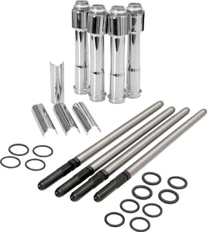 Complete kit. Made out of 7/16" O.D. chromoly steel tubing for strength and durability, Adjustable to ensure accurate valve train operation under all conditions, Compatible with solid and hydraulic lifters. Kit includes all pushrods, covers, keeper and o-rings