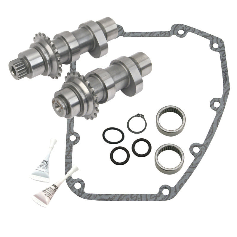 Fits 2006 HD® Dyna® and 2007-'16 big twin models. The 625 cam is designed for 95 inch or larger engines with compression ratios between 10.0 and 10.75:1.Many riders are leery of the stock chain cam drive in late model big twins. While it is true that the early version introduced in 1999 was often not well suited to high performance applications, the later version introduced in the 2006 Harley-Davidson® Dyna® model, and later incorporated in all big twins in the 2007 model year, was vastly improved. New chain drive with hydraulic chain tensioners work well for all but the most demanding high performance applications. That's why S&S now offers our most popular grinds for 2007-up big twins in a chain drive version. The advantage to a chain drive cam set is the expense. When you replace the stock cams with an S&S chain drive cam set, you re-use the stock cam drive components so you save money on parts.