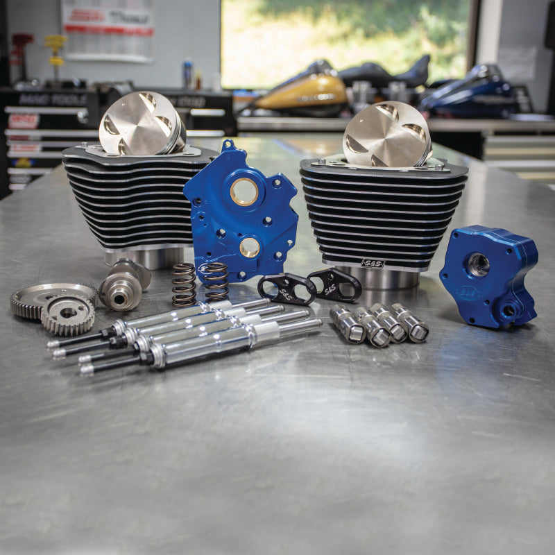 S&S Power Package - 124 in. CI Oil Cooled, Gear Drive with Highlighted Fins and Chrome Pushrod tubes for 107 in. M8