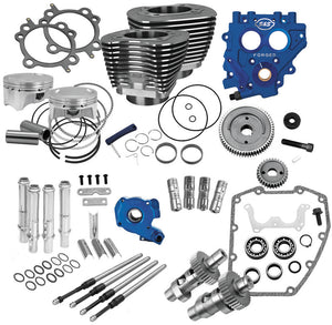 The 100" Power Package is the ideal combination of performance and savings to transform your Twin Cam HD without breaking the bank. Bump the early Twin Cam from 88ci to 100ci as well as adding matched cams/cam plate/oil pump and everything else a high performance cam chest needs to reliably make big power. 4" Bore bolt on cylinder and piston kit, 10.5:1 Compression, Wrinkle Black Finish, S&S 585 Easy Start Chain Drive Cams, TC3 Oil Pump, TC3 Cam Plate, S&S cam chain tensioners, Quickee Adjustable Pushrods with Tubes, S&S Precision Tappets.
