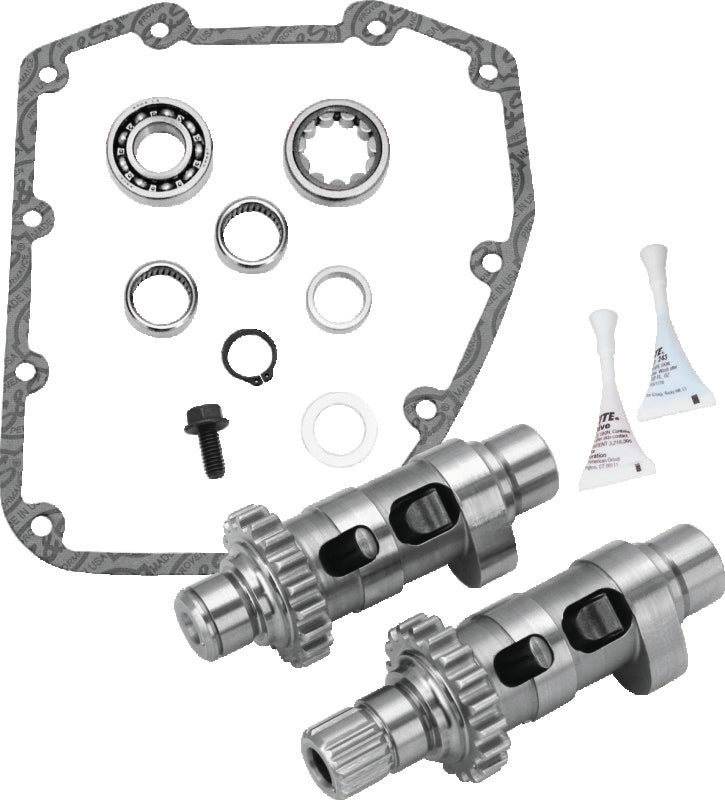 S&S MR103CE Easy Start chain drive camshaft kit for 1999-2006 HD Big Twins except 2006 HD Dyna are recommended for modifed engines with larger displacement and higher compression. More torque and horsepower than bolt in cams can deliver. Stock valve springs in 2005-2006 engines may be used with MR103 and HP103 cams. An S&S oil pump and cam support plate, along with a stock 2007 and later style hydraulic cam chain tensioner upgrade is highly recommended for chain drive cams.