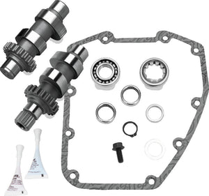 S&S MR103C chain drive camshaft kit for 1999-'06 HD® Big Twins except '06 HD® Dyna® are recommended for modifed engines with larger displacement and higher compression. More torque and horsepower than bolt in cams can deliver. Stock valve springs in 2005-'06 engines may be used with MR103 and HP103 cams. An S&S oil pump and cam support plate, along with a stock 2007 and later style hydraulic cam chain tensioner upgrade is highly recommended for chain drive cams.