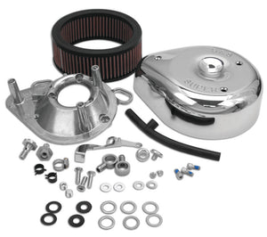 This teardrop air cleaner kit fits 1999-'06 HD® Big Twins with S&S® Super E & G carburetors. Kit includes backplate, pleated cotton gauze filter element, chrome teardrop cover, hardware, and instructions.