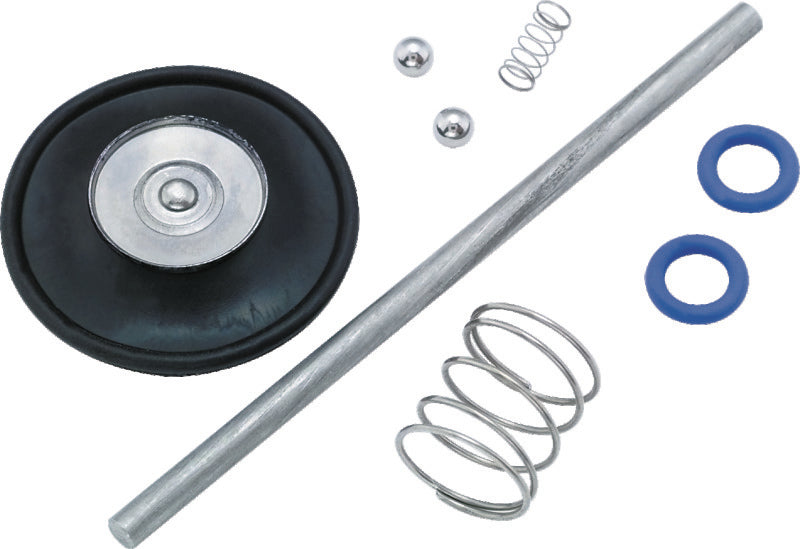Accelerator pump rebuild kit. Fits S&S Super E and G carbs. Includes diaphragm, diaphragm spring, check balls, check ball spring, pump pushrod, and required hardware and o-rings.
