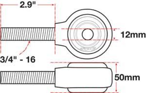 Build your next project with these forged steel alloy threaded receivers and xAxis sealed flex joints from SPC Performance. Get the increased angularity of a mono-ball that has been equipped with high mis-alignment inserts, the reduced compliance of a spherical bearing, and better durability than rubber and urethane bushings with SPC's superior design. This assembly has RH 3/4"-16 threads takes a 12mm bolt and is 50mm wide. 36deg of articulation, sealed dust boots, moly grease and a highly polished electroless nickel ball makes this the best joint on the market. These assemblies utilize a snap ring for positive retention and easy replacements. Download a package model into your CAD software and start designing today. California Residents WARNING Installation Instructions