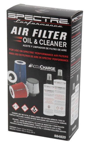 The Spectre Accucharge Precision Air Filter Cleaning and Oiling System was designed for all Spectre HPR replacement and racing air filters. Spectre's AccuCharge precision oiling system features graduation on the bottle for precise measuring and an easy-to-use squirt top bottle making the application both effortless and accurate. The system comes complete with a pump spray bottle of cleaner and one of filter oil, which is made from food grade mineral oil with absolutely no petroleum product or animal fats. Material Safety Data Sheet Material Safety Data Sheet Material Safety Data Sheet Material Safety Data Sheet Material Safety Data Sheet Installation Instructions