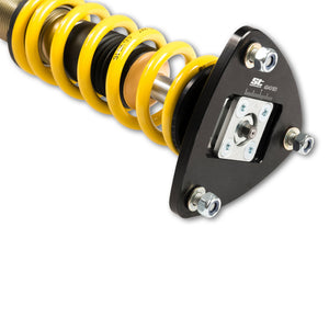 Looking for maximum performance for your car? Our adjustable ST XTA Coilover kits are the upgrade you need. All ST XTA systems are delivered with a linear race springs system, adjustable dampers, and aluminum unibal camber adjustable top mounts. ST XTA Coilover kits deliver precise adjustment to your ride height so you control the look of your car. We manufacture the adjustable spring perch made of durable and friction-optimized polyamide composite material with a stainless steel insert. Thanks to the composite material corrosion is prevented between the strut and perch ensuring long lasting height adjustability while the stainless steel insert provides strength and confidence! ST XTA Coilovers come preset to our factory recommended damper settings, the same configuration we test them at on our KW shock dynos before they go into your box. The 16 distinct clicks of adjustable rebound damping allow you to refine the driving dynamics with a simple turn of the adjustment knob. Each kit includes a detailed damper setup manual making it easy to reset to our recommended setting at any time. Whether your preference is comfort, performance, or something in between; ST XTA puts the finer details of the driving dynamics in your hands. The top mounts included with our ST XTA Coilover kits allow you to adjust the camber at the front axle to dial in aggressive wheel and tire fitment. They also allow you to maximize the tire's contact patch for driving in fast corners and any other driving scenario that demands maximum grip. Galvanized zinc coated steel struts optimize corrosion protection for long lasting use. We add a dust protection system to prevent unwanted dirt and particulate from coming in contact with the hardened chrome piston rod or getting into the valve packs. We reinforce the system with a multi-layered pressure resistant sealing package, mono block guide system and a low friction piston band which works inside the pressure resistant internal damper housing.