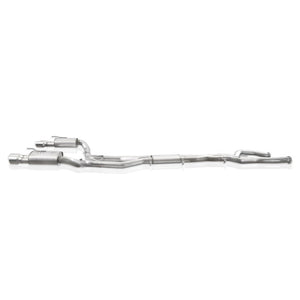 2008-09 Pontiac G8 GT 6.0L 3" Catback factory connect exhaust system. All tubes are CNC mandrel bent for optimal flow. Made from 304 stainless steel for maximum corrosion resistance. Includes factory connect leads, X-pipe, resonator, tailpipes and dual chambered mufflers with quad 3.5" dia. slash cut double wall conical polished tips - two per side. This Factory Connection exhaust system bolts directly to the OEM 2 bolt flanges. This system can be upgraded later by discarding the lead pipes and pairing with a Stainless Works header kit (P/Ns PG8HCAT, PG8HCATST, PG8HOR, PG8HORST). Mill finish, All TIG welded for strength and durability. These kits come with a lifetime warranty and proudly made in the USA.