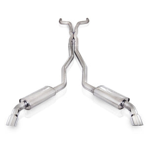 2010-15 Camaro 6.2L 304 SS CNC mandrel bent 3" dual exhaust system with x-pipe, dual turbo chambered mufflers, mirror polished stainless steel tips, and all hangers and clamps for easy installation. Fits factory connection point.