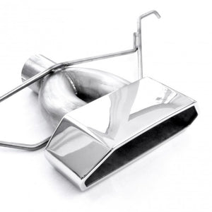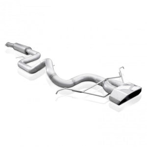 2013-18 Ford Focus ST 2.0L 304 SS 3" Catback Exhaust with vintage round muffler and a laser cut, mirror polished 304 SS wide tip. Includes hangers and clamps, and adapters and mates to the factory connection point. Includes a second flanged adapter for 3" diameter inlet that fits up to Stainless Works Downpipe (FC13DP, FC13DPCAT) to make a full 3" system.