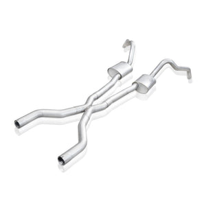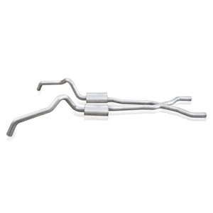 1962-67 Chevy II Nova LS1 All tubes are CNC mandrel bent for optimal flow. Made from 304 stainless steel for maximum corrosion resistance. This huge 3" diameter 304 Stainless steel Exhaust System. Designed to fit Stainless Works headers with 3" slip fit collectors (P/N NVLS1). The front leads flow into the X-pipe then flows into a set of dual chambered turbo mufflers out to a dual set of over-axle tailpipes that exits behind rear tire between quarter panel and leaf spring. All clamps and hangers needed to install this system on your car are included. Mill finish, All TIG welded for strength and durability. These kits come with a lifetime warranty and proudly made in the USA.
