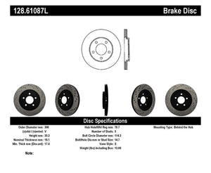 StopTech 05-10 Ford Mustang V6/4.0L / GT V8/4.6L Cross Drilled Left Rear Rotor - 128.61087L
