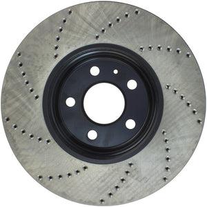 StopTech Drilled Sport Rotors are 1-piece direct replacement brake discs for factory brake systems and stock calipers that look great behind your wheels – and offer significantly improved braking performance. The unique cross-drilling aids with heat and brake dust dispersal; prevents glazing of the pads; adds bite and improves wet and dry braking performance. Built to last; the black e-coating provides protection from corrosion and the high carbon metallurgy (in most applications) offers quieter operation; better crack resistance and increased performance. Warranty