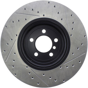 StopTech Drilled and Slotted Sport Rotors are 1-piece direct replacement brake discs for factory brake systems and stock calipers that look great behind your wheels – and offer significantly improved braking performance. The unique cross-drilling and slotting aids with heat and brake dust dispersal; prevents glazing of the pads; adds bite and improves wet and dry braking performance. Built to last; the black e-coating provides protection from corrosion and the high carbon metallurgy (in most applications) offers quieter operation; better crack resistance and increased performance.