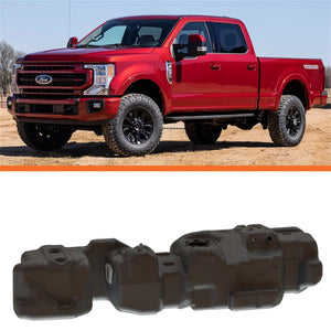 2017 FORD Crew Cab, Short Bed—Generation 6   (7020217)55 Gallon*, extra capacity, extra heavy duty mid-ship replacement fuel tank for 2017 FORD F250 and F350 pickups with Crew Cabs, 6 ½ ft beds and Power Stroke engines.  Tank comes complete with black, baked epoxy-coated galvanized steel mounting strap, plated and/or galvanized front support system, rollover safety vent valve and accessories.  Tapered tank features exclusive low fuel trap design so every gallon can be used, and hangs approximately only 1 ¾' below bottom of the stock tank.  TITAN's Generation 6 tanks feature an OEM style torque ring sending unit mounting system for easy, positive installation.This new Ford tank is made of our famous military grade, cross-linked polymer (XLHDPE). It's at least  ¼' thick and built to outlast all competitors. It's tougher than steel and more durable than aluminum. We routinely test our products using state-of-the-art computer simulation as well as actual, physical drop tests.  We fill our tanks completely and drop them 30 feet onto a steel plate---never losing a drop of liquid. Our legendary products are so tough and well-proven that we back them with a Lifetime Warranty+!           PATENTS  PENDING Very similar in general appearance to original equipment tank.  For model year 2017.Made in the U.S.A