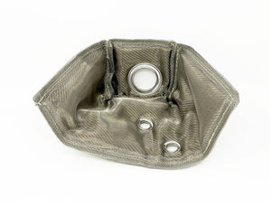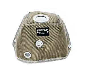 Torque Solution Thermal Blankets are highly effective at protecting components around your turbo by blocking the heat produced by the hot down pipe elbow. Our blankets are made of protective wire mesh, insulated fiberglass layers, and an external crushed volcanic rock layer. This blanket fits the FK8 Type-R turbocharger down pipe elbow perfectly to keep your engine bay temps in check. Reduced under hood temps help reduce turbo lag, increase power by lowering IAT's, protects critical components near the turbo and looks great doing it.