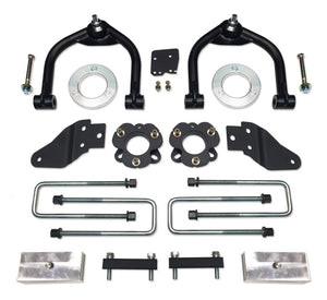 Tuff Country's 4 inch Nissan Titan XD lift kit uses a combination of replacement uni-ball upper control arms and upper strut spacers to raise the Titan XD enough to fit 33 inch tires. Front end geometry is maintained using the new control arms, this avoids any increased wear and tear on suspension components. 2 inch lift blocks lift the rear end. No drilling required to install.