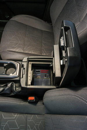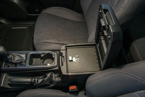 Continuing the Tuffy legacy of designing and manufacturing the finest security console safes in the industry since 1997, Tuffy is proud to introduce our security console safe for the Toyota Tacoma with a fixed center console. This 16 gauge steel console safe provides style, security and convenience. While maintaining the refined curves of the OEM console, the Tuffy console safe transforms your OEM console into a heavy-duty lockable storage area utilizing Tuffy’s Pry-Guard locking system with 10 tumbler double bitted security key to help protect valuables from thieves. The innovative design utilizes an exclusive lid support feature that keeps the lid open while accessing contents. The safe maintains a completely stock look including full use of armrest and lid. Featuring a durable texture powder coat finish, the safe comes ready to install in just a few minutes without drilling.