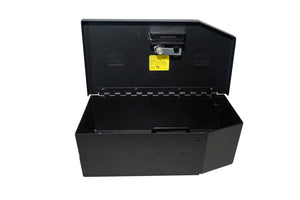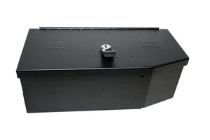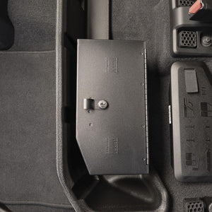 This high security welded steel lockbox mounts under the rear seat in your 2020-2024 Jeep Gladiator. The compact form of the Tuffy lockbox can be discreetly installed within the OEM plastic fence and has sufficient lockable storage to conceal valuables best left unseen to prying eyes. Its secured contents are easily accessed by flipping the driver's side rear seat up and opening the secured lid. Tuffy's Pry-Guard Locking System with a 10 tumbler double bitted security lock with built in weather seals will keep your valuables secure while you enjoy your adventures. Installation Instructions