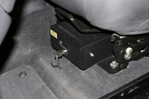 This high security welded steel security drawer mounts under the drivers side seat in a Jeep TJ & LJ (With Flip Seat). The formfitting design of the Tuffy lockbox has over 128 cubic inches of lockable storage. It’s secured contents are easily accessed by maneuvering the drawer open and closed on the smooth ball bearing slides using the convenient pull lever. Featuring Tuffy’s Pry-Guard Locking System with a 10 tumbler double bitted security lock with built in weather seals. The design incorporates a heavy duty fully extending slide system, weather seal & welded construction. A formed rib in the enclosure additionally strengthens the locking system. Tuffy’s exclusive bolt-blocker bracket is included for additional security. Mounts inconspicuously under the drivers side seat in a Jeep TJ & LJ (With Flip Seat) out of apparent sight of would be thieves. Uses the factory hardware without drilling. The drawer must remain locked while operating the vehicle.
