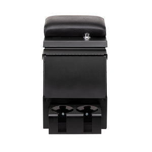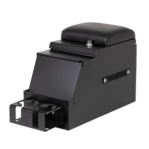 This convenient 10 inch wide, 16 gauge steel security console features Tuffy’s patented pushbutton latch system. For safety and convenience while operating the vehicle, the lid also latches closed without having to be locked. It has 2 compartments, a separate compartment for mounting a stereo, CB Radio, or other electronic equipment, and a lockable rear storage space lined with a rubber floor mat. The spacious rear compartment accommodates a CD changer, tools, and other valuables.
