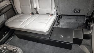 Organize your 2019-2024 Ram 1500 Crew Cab truck with the Tuffy under-seat lockbox. This high security welded steel security lockbox has a full width formfitting design creating over 3,000 cubic inches of lockable storage. Easily access your secured gear by flipping up the lid of your 60/40 split bench seat. The unique design allows the full width under the seat to be used to organize and secure whatever life demands of you. Provide additional organizational options by adding a set of twist-to-lock pressure fit dividers, specifically designed for your RAM lockbox. Feel confident securing your gear using Tuffy's Pry-Guard Locking System with three-digit combination security locks with built in weather seals. Mounts inconspicuously under the seat out of sight of opportunistic thieves. Declutter your space by quickly and easily installing this Tuffy lockbox using the factory hardware without drilling.