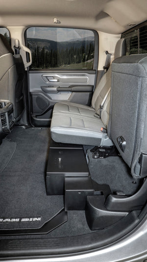 Organize your 2019-2024 Ram 1500 Crew Cab truck with the Tuffy under-seat lockbox. This high security welded steel security lockbox has a full width formfitting design creating over 3,000 cubic inches of lockable storage. Easily access your secured gear by flipping up the lid of your 60/40 split bench seat. The unique design allows the full width under the seat to be used to organize and secure whatever life demands of you. Provide additional organizational options by adding a set of twist-to-lock pressure fit dividers, specifically designed for your RAM lockbox. Feel confident securing your gear using Tuffy's Pry-Guard Locking System with a 10 tumbler double bitted security lock with built in weather seals. Mounts inconspicuously under the seat out of sight of opportunistic thieves. Declutter your space by quickly and easily installing this Tuffy lockbox using the factory hardware without drilling. Installation Instructions