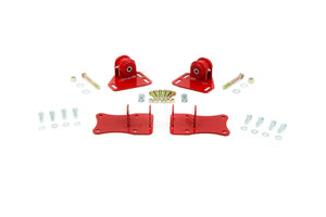 UMI’s LS swap kit features engine mounts and a T56 crossmember used to place a new drivetrain in 1970-1974 GM F-Body cars. UMI’s LS engine mounts locate the LSx engine properly on the 1970-1974 crossmember. The mounts feature precision laser cut 3/16″ steel and a tough powder coat finish. Engine vibration is damped using the latest greaseable polyurethane bushing technology. Slotted design permits 1″ fore/aft movement while crankshaft height remains in stock location. The transmission crossmember is built using laser cut tab and slot construction and features 1.5″ adjustment range. The high strength 3/16″ steel crossmember adapts both T56 and T56 Magnum transmissions into the F-Body. Race proven on the UMI 1971 Camaro. 100% Made In USA.