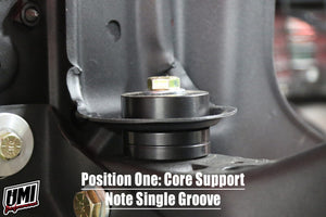 UMI’s 2664 aluminum body mounts are a direct replacement for worn out factory body mounts and are used to restore the body location to factory position. These aluminum body mounts are great for handling or drag race cars as they give the car a crisp, responsive feel while reducing subframe movement. These CNC turned body mounts fit nicely and look great with a black anodized finish. Hardware included. 100% Made In Philipsburg, PA - USA of US materials.