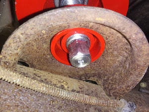 UMI’s competition 3rd Gen F-Body front weight jack system replaces the factory spring with a tough, adjustable weight jack bucket and a custom wound ultra-premium performance spring. This kit gives up to 2-½” lowering from factory height. The adjustment bucket features an extra thick ¼” base to resist bending under the force of competition. Ultra-smooth ride height adjustment with our acme bolt and industry exclusive thrust bearing system means easier ride height changes at the track. Bending potential is reduced by the thrust bearing system which also helps spread the load over a large surface area. Custom designed 1050 lb/in springs offer a firm ride suitable for auto-x, road race and back road corner carving as well as spirited daily driving (if you don’t mind a firm ride). The 2065-3 kit gives the ride height adjustability of a coilover while still allowing maximum tire clearance around the strut. Works great with the UMI Afco strut, Viking strut or Koni strut. This kit is available in UMI gloss black or red powder coat. 100% manufactured, tested and race proven in the USA.