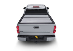If you're in the market for sleek, stylish bed protection for your pickup, then consider the low-profile, color-matched aesthetic of a Fusion Tonneau Cover from UnderCover! This tonneau cover offers a classic tri-fold design, exceptional theft resistance, and professionally paint-matched top panels that blend seamlessly with the body of your pickup. This tonneau cover features a rugged aluminum panel construction for maximum strength and theft resistance. Unlike theft-prone soft covers, the UnderCover Fusion is cut and slash-resistant, keeping the valuables in your truck's bed safe and secure. However, this cover doesn't only resist theft but also extreme weather conditions! Integrated EPDM rubber hinges and perimeter seals prevent moisture intrusion, protecting your precious cargo against heavy rain, dirt, dust, and other contaminants. Aesthetically, this tonneau cover is tough to beat. Unlike most competitors, which feature a textured black finish that blends into the bed, the UnderCover Fusion features painted top panels that are professionally color-matched to your pickup's factory paint code, ensuring a flawless match that doesn't disappear into the bed but become a part of your pickup's body. UnderCover backs this finish with a limited lifetime warranty. Operating the UnderCover Fusion Tonneau Cover is simple and intuitive. The classic tri-fold design features three panels and three sets of hinges, which allow you to fold the cover onto itself toward the bulkhead for bed access. Where most tri-fold tonneau covers only offer 2/3 bed access, the UnderCover Fusion features integrated support arms that enable you to secure the cover against the rear window/cab for complete access to your pickup's cargo space when loading oversized cargo.
