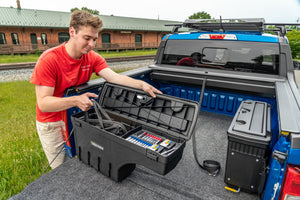 SwingCase by UnderCover is the most innovative and versatile truck storage box ever made. Built to last from lightweight, high-impact ABS plastic; the tough, weatherproof, SwingCase is custom fitted for your truck. The SwingCase is affordable, too. In fact, you can purchase two SwingCases for less than the price of an old-fashioned truck bed box... and save a lot of space, too. Best of all, the SwingCase provides storage that is always within reach without sacrificing the use of your truck bed. Just simply pull the release lever and your gear swings out to you, no more reaching over or climbing into your truck bed. For work or play, go with SwingCase today. Warranty Installation Instructions Warranty Installation Instructions