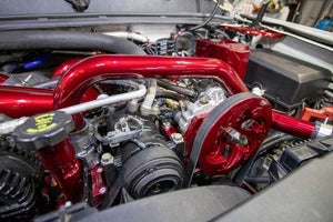 The Top Outlet Billet Thermostat Housing and Upper Coolant Pipe Kit for 2006-2010 LBZ/LMM Duramax replaces the OEM upper radiator hose that normally crosses over the driver side valve cover as well as the coolant return pipe. By changing the coolant routing to an upwards and forward layout from the thermostat, this kit improves access to driver-side fuel system components, adds room for larger aftermarket turbochargers, and updates the engine bay appearance. This kit is meant for use with WCFAB DUAL CP3s. Also compatible with dual alternator setups. Not compatible with PPE dual fueler kits. - - Replaces the following GM Part Numbers: 19330105, 15792824, 25833204, 97361881