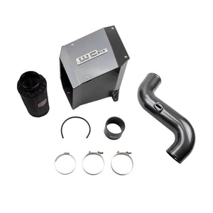 WCFab 2007.5-2010 GM LMM 6.6L Duramax 4" Intake Kit with Air Box. This high flow, fabricated aluminum intake pipe and air box enclosure with dry filter assembly replaces the restrictive plastic factory parts on your diesel for improved engine performance. All new design significantly increases air flow to your turbo producing improved horsepower and torque, quicker throttle response, and cooler intake temperatures by drawing cold air through the inner fender. All aluminum construction features large diameter 4" piping with smooth aerodynamic bends to improve intake air velocity, volume, and provide more aggressive engine and turbo sound during acceleration. High quality hardware, silicone boot, seals, and stainless steel t-bolt clamps ensure optimum durability and ease of installation. Removable air box lid elementallows for easy visual inspection and maintenance of your WCFab filter with included hydrophobic pre-filter cover, to help keep your MAF sensor, turbo, and engine airways contaminant free. Full assembly finished in your choice of WCFab's signature custom powder coat colors for a look as unique as your truck.
