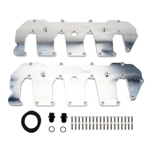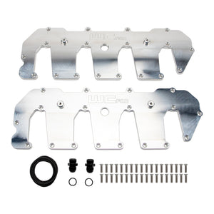 WCFab Billet Aluminum Upper Valve Cover sets fit LLY, LBZ, and LMM Duramax and are a great way to clean up your engine's appearance. Integrated o-ring seal replaces OEM gaskets and prevents the need for use of silicone sealers. Includes countersunk stainless steel fasteners and black anodized #10 JIC (-10AN) PCV fittings. Finished in raw aluminum ready for polishing or painting standard. Custom Color Powder Coat finishes available as an optional upgrade and carry additional lead time.We recommend pairing these with our Top Outlet Billet Thermostat Housing and Upper Coolant Pipe kits (or a forward facing thermostat setup) because these valve covers do not include brackets for the side mount routing of the OEM setup.