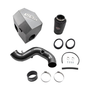 WCFab 4" Intake Kit with Air Box for 2013-2018 6.7L Cummins equipped Ram 2500 / 3500 truck with OEM / factory style turbocharger. - - This high flow, fabricated aluminum intake pipe and air box enclosure with dry filter assembly replaces the restrictive plastic factory parts on your diesel for improved engine performance. All new design significantly increases air flow to your turbo producing improved horsepower and torque, quicker throttle response, and cooler intake temperatures by drawing cold air through the inner fender and ram air duct in the grille. All aluminum construction features large diameter 4" piping with smooth aerodynamic bends to improve intake air velocity, volume, and provide more aggressive engine and turbo sound during acceleration. - - High quality hardware, silicone boot, seals, and stainless steel t-bolt clamps ensure optimum durability and ease of installation. Removable air box lid element allows for easy visual inspection and maintenance of your WCFab filter with included hydrophobic pre-filter cover, to help keep your MAF sensor, turbo, and engine airways contaminant free. Air box provides mounting provision for the OEM air box actuator so that it can remain plugged in for CEL free operation, but keeps both grille and fender ports fully open for maximum air flow to your turbo. - - Full assembly finished in your choice of WCFab's signature custom powder coat colors for a look as unique as your truck. Made in USA. - - Replaces the following MOPAR Part Numbers: 53032944AL, 53032944AC, 53032944AD, 53032944AE, 53032944AF, 53032944AG, 53032944AH, 53032944AK, 68137142AC, 68137142AB - - Note: Air box is NOT compatible with intake pipe from kit WCF100863.
