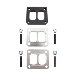 1/2" Thick steel Divided T4 Spacer Plate Kit, Ceramic Coated Black. Includes M10 Mounting Studs 1" long, nuts, washers, and two T4 Gaskets