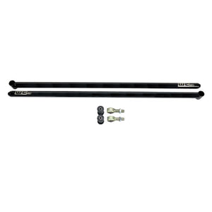 Traction bars are a necessary upgrade when increasing the horsepower on your truck to prevent the axle from twisting which can lead to broken u-joints, driveshafts, and even twisted axle housings. These Universal Fabricator Series 68" Traction Bars from WCFab include the essentials, allowing you to customize the mounts for your specific application. Features High quality RockJock rebuild-able and grease-able Johnny Joint heim connections at the frame side connection for the bars. Heavy Duty Poly Urethane Bushing at the axle side connection for decreased noise and vibration (common complaint when solid heims are used on both ends). WCFab traction bars are all finished with their professional in house powder coat process in your color choice and come standard with a epoxy primer base coat before the final color to increase corrosion resistance by more than ten times compared to just your standard powder single coat application. Made in USA.