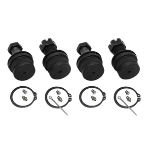 Superior materials lead to superior performance. When you replace and upgrade your failing OE ball joints with a heavy-duty Yukon unit you get a ball joint built to the highest standards of quality and durability. Its housing is CNC-machined from forged SAE 1045 carbon alloy steel and the ball stud is made from induction heat-treated, hot-forged 4140 chromoly. These ball joints use military-grade acetal bearings because of their advanced anti-friction properties and dimensional stability. Ball joints are only as durable as the protection provided by their rubber boots. Yukon ball joints feature a two-staged approach with a synthetic Neoprene/CR outer boot and an inner seal/pancake boot that safeguard the spherical joint and bucket against gritty road grime, oil, gas, and engine fluids, and extreme temperatures. This kit replaces the upper and lower front ball joints on both sides and includes Grade 8 hardware, castle nuts, c-clips, cotter pins, and zerk fittings.