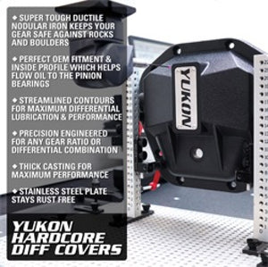 Yukon Hardcore Diff Covers are constructed from thick-walled, high-strength nodular steel to protect lockers, gears and axles from the most extreme hits in off road driving. They also increase the structural rigidity of the differential, reducing deflection under high-torque situations that can put severe loads on vital internal parts. Yukon Hardcore Diff Covers feature a durable powder coat finish and high strength steel fasteners for easy bolt-on installation. It’s no secret that the underside of your rig can take a beating. Remember your diff! It’s the lowest hanging fruit and very susceptible to damage… crack or break it and you’re done for the day. Upgrade to a Yukon Hardcore Diff Cover and enjoy more peace of mind on the trail.
